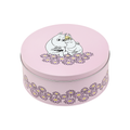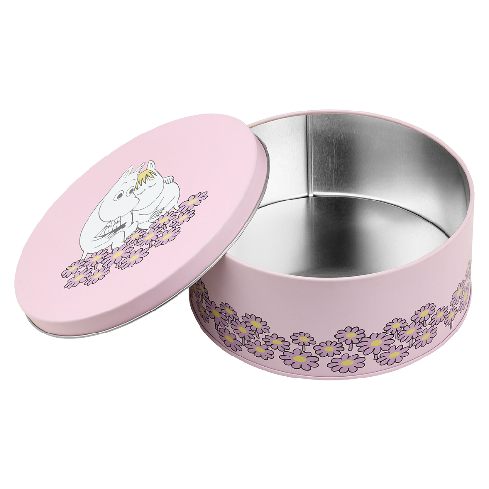 Die runde Zusammen-Blechdose von Muurla ist ein wunderschöner und vielseitiger Organizer für kleine Haushaltsgegenstände. Diese zartrosa Dose, verziert mit einer filigranen Blumenwiese und einer herzlichen Umarmung von Mumintroll und Snorkfräulein, bringt Freude in den Alltag. Die Größe ist ideal, um Ordnung im Badezimmer zu halten: Bewahren Sie Haargummis, Klammern, Nagellacke oder andere kleine Schönheitsprodukte stilvoll auf. Die Dose ist lebensmittelecht und eignet sich daher auch hervorragend zum Servieren und Aufbewahren von trockenen Leckereien.